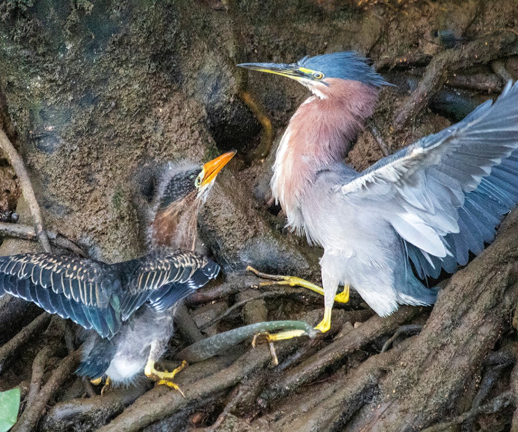 To make it even more special, the Wings & Water exhibit asks each artist to submit a statement about each invited work. That means I’ll get to tell the story of this shot, how a baby heron survived an encounter with a roadside hawk because of the immediate, fierce action of its mother. You can read it here.