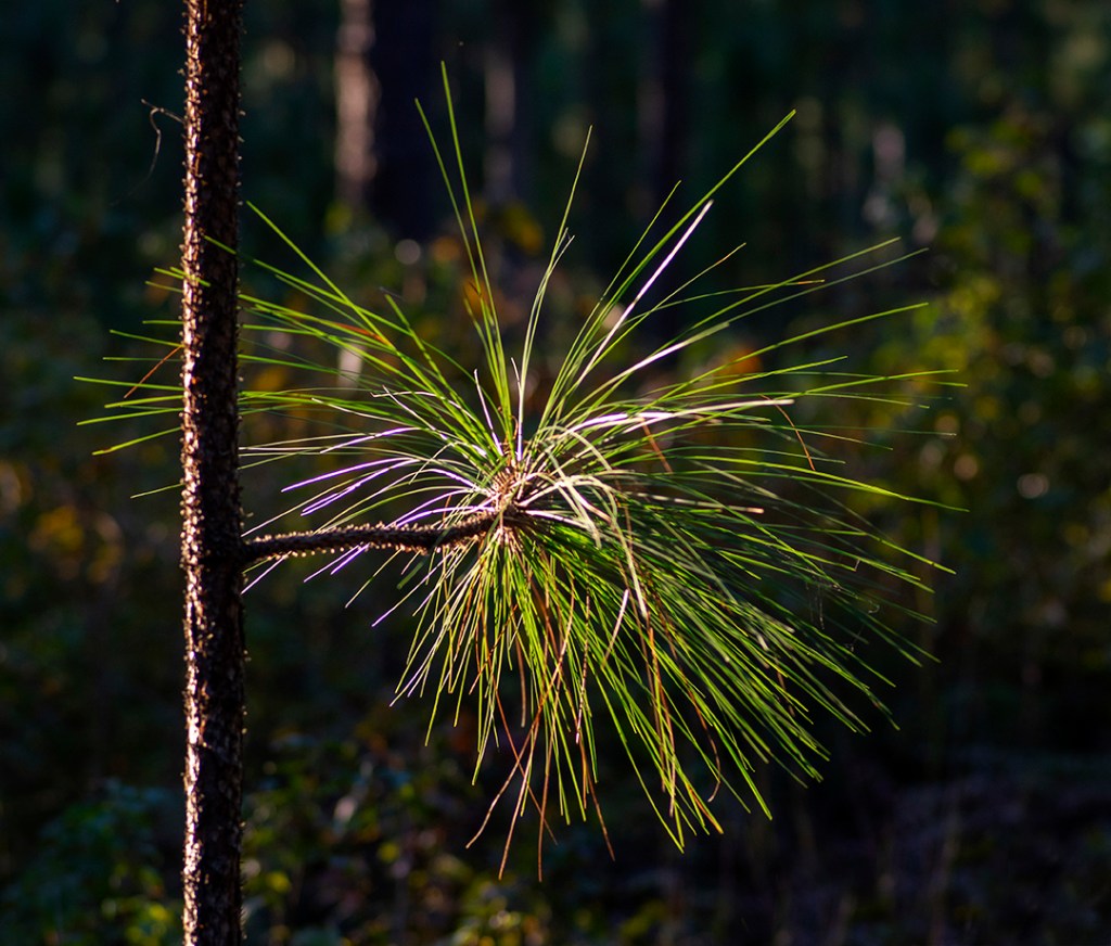 But ultimately I am restored by the sighing and shimmering of pom pom balls of long slender leaves moving in a gentle breeze. And reminded that we humans also sometimes act in redemptive ways. Our own National Forest Service works hard, in spite of severely limited funding, to restore the longleaf pine with plantations like this one.