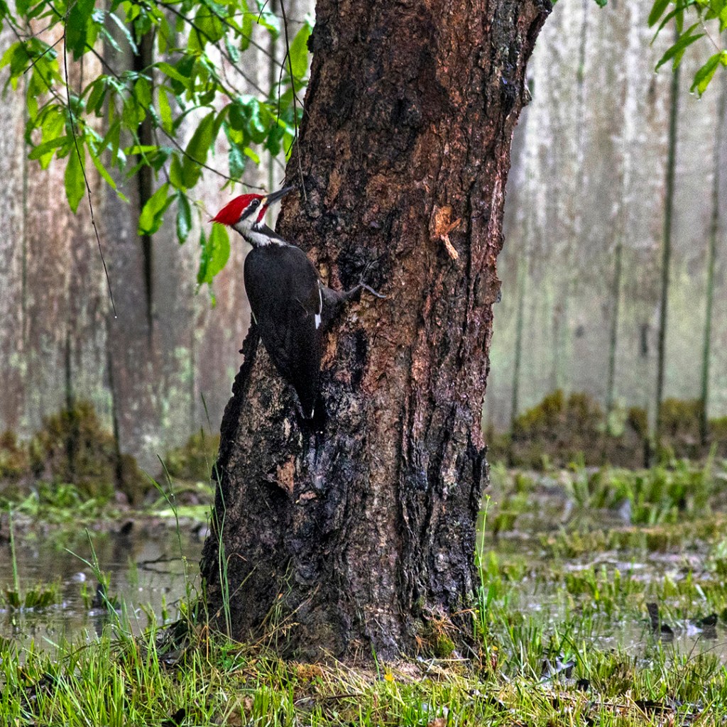 Even so, I was surprised and delighted to look out the back door and see this. Red-bellies are pretty common in my back yard. Not so much this magnificent, noisy, red-crested drummer boy.