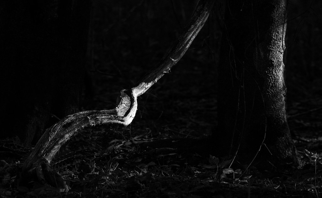 Well, it’s a vine, not a stick, but… I knew instantly that he was right. The zig-zag vine being struck by late afternoon light was the story of the photo and in one shot it was much more prominent than the other. I had invested too much time in the other version and was having trouble letting it go!
