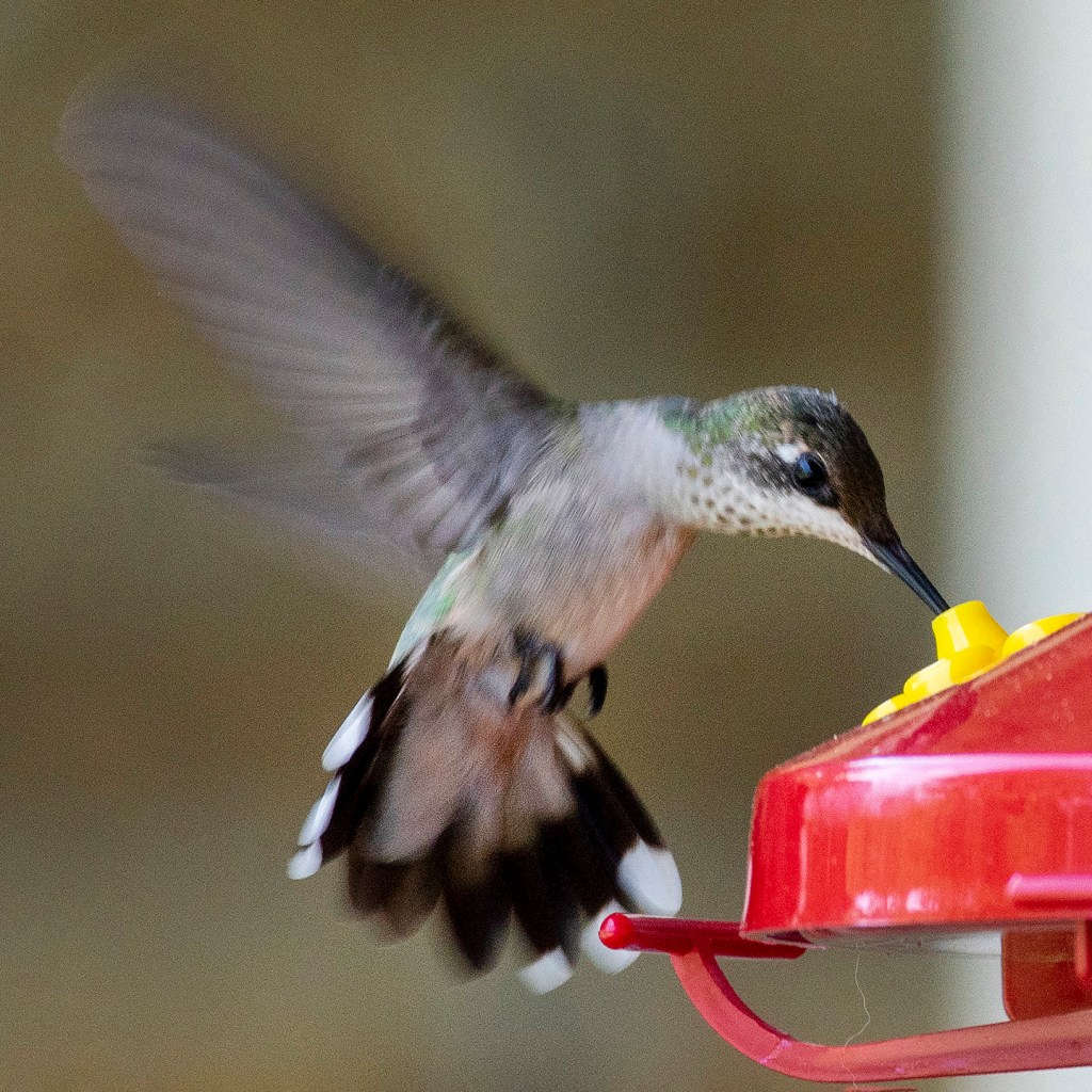 How is this even possible? How can one tiny body hold together in the utter contradiction between wings flapping up to 70 times per second yet beak still enough to thread a toothpick-size hole? No wonder her heart is likely beating more than 1200 times a minute! (Yes, “her.” This is a female ruby-throated.)