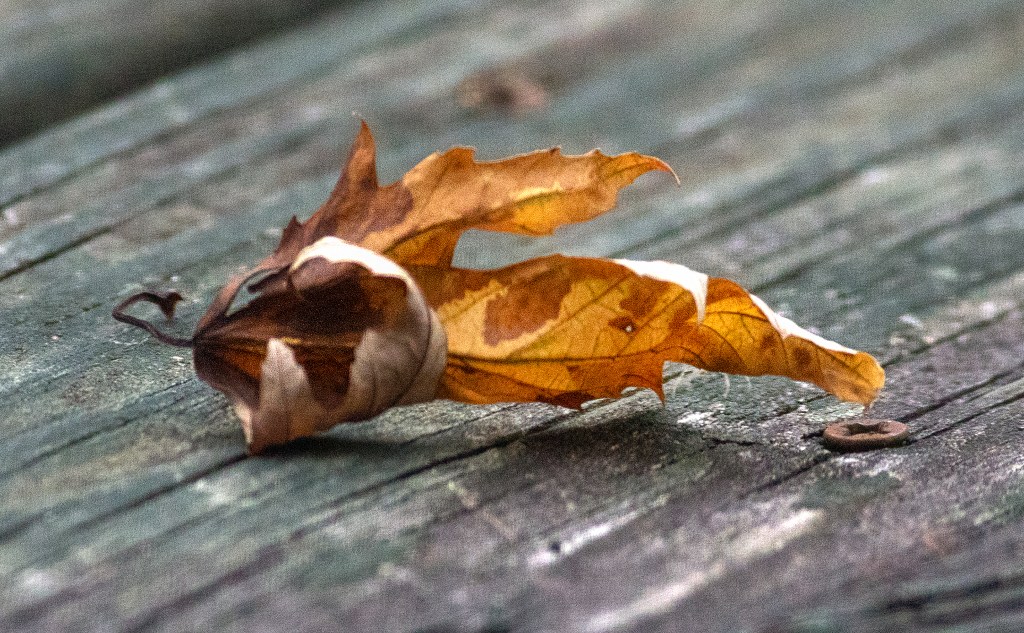 A winnowing breeze brought it to rest on my deck for a little while, then carried it on its way.