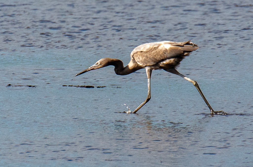 October 28, 2023 – In a matter of seconds, this Reddish Egret’s long neck will dart with lightening speed and it will swallow its prize before I can click the shutter again (Egretta rufescens). That happens quite a lot!