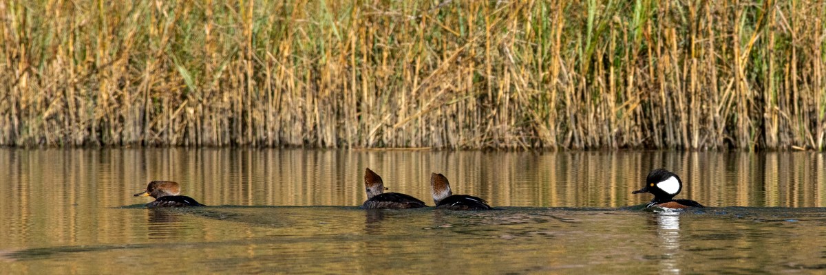 Frustrating and gratifying! That’s bird photography for me. This family of Hooded Mergansers (Lophodytes cucullatus) cruised past me in my kayak in the salt marsh on Mobile Sound one winter day a few years ago. The light was golden, the water calmly reflective, and their formation perfect. But then, of course, the moment I click, the two females in the middle turn their heads away. One more addition to a huge collection of “near perfect” shots! Aww, well. Beautiful anyway, and gratifying, especially because Nature Serve’s conservation rating of this species is “Vulnerable” in Alabama. Nothing motivates my photography more…